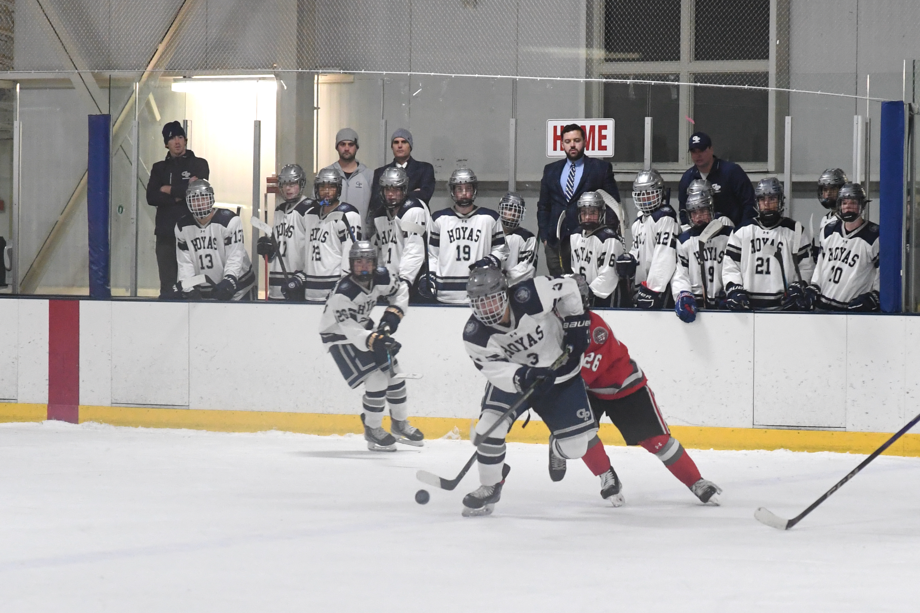 Hoyas win first game of Purple Puck vs Spalding 7-2. Next game tonight at 8pm vs. Gonzaga.
